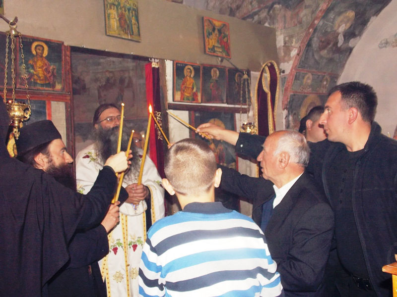 Благодатни огањ је увеличао дан и окупљени народ је побожније него икад, прилазио са свећама и узимао светлост од свеће упаљене Огњем Благодатним у рукама игумана Зочишког, архимандрита Стефана, који је служио вечерњу службу са оцем Миленком, парохом великохочанским. Поделивши Благодатни огањ, отац Стефан је рекао да је огањ из Јерусалима слика и истинито Васкрсење, јер сe на чудесан начин јавља са Гроба Христовог после молитве православног Патријарха Јерусалимског како би укрепио све хришћане православне и све остале који из руку православног Патријарха узимају тај свети огањ.