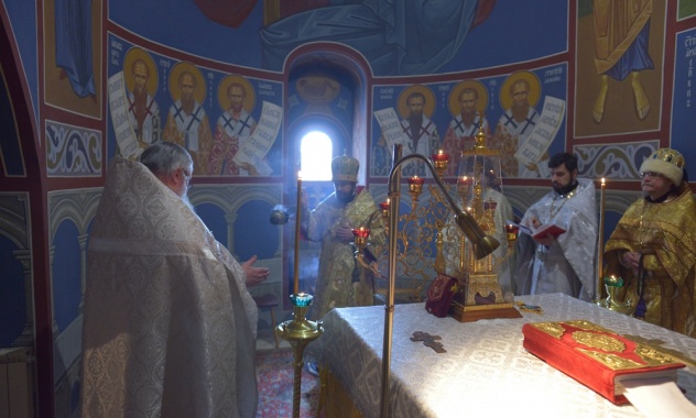 По завершении Литургии иерарх прочитал молитву на раздробление артоса; вокруг храма был совершен крестный ход.