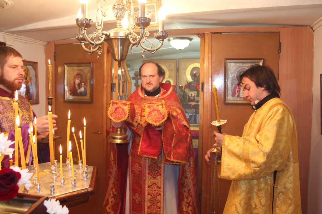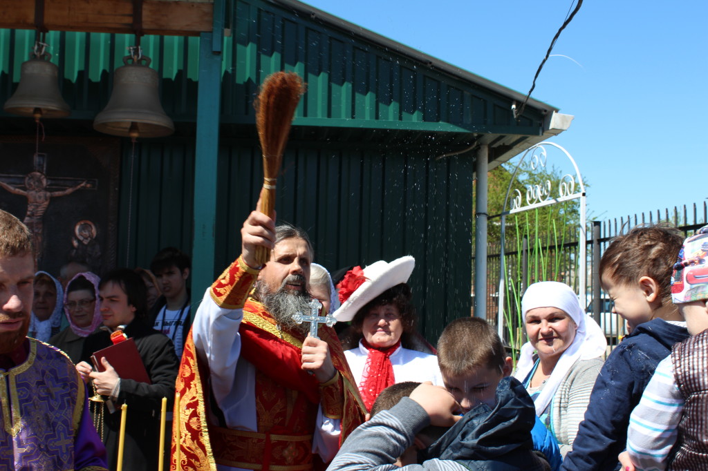In the evening of April 25 the Vigil service was celebrated with blessing of breads. On April 26, on the patronal feast, the Divine Liturgy was performed. The church rector, Priest Alexander Zvonchenko, served the Liturgy with Archpriest Oleg Mayorov concelebrating him. The seventh anniversary of priestly ordination of Father Alexander, celebrated at the same day, added to the solemnity of the festival. The parishioners together proclaimed the priest “Many years”. Archpriest Oleg cordially greeted Fr. Alexander on this anniversary and gave him an icon of the Savior.