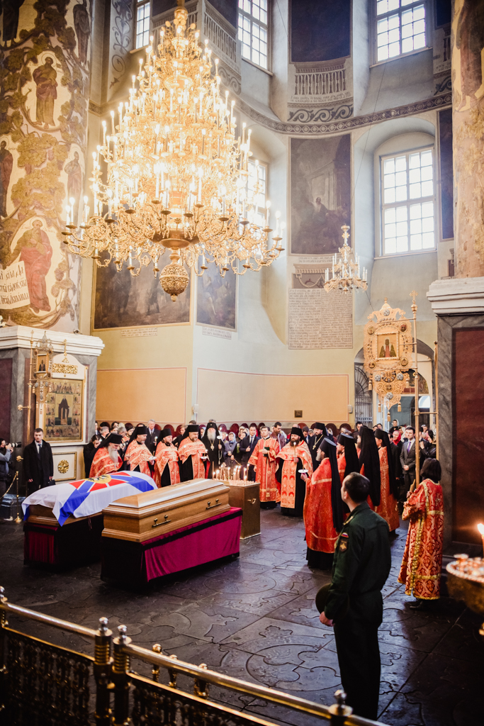 Сегодня в Большом соборе Донского монастыря была отслужена панихида по Великому князю Николаю Николаевичу (младшему) и его супруге Великой княгини Анастасии, после которой прахи были перезахоронены в часовне Преображения Господня, находящейся в Мемориально-парковом комплексе героев Первой Мировой войны, сообщает пресс-служба монастыря.