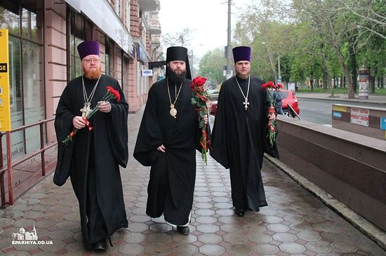 Утром по благословению митрополита делегация Одесской епархии в составе викария Одесской епархии епископа Южненского Преосвященнейшего Диодора, благочинного Одесской епархии протоиерея Павла Полещука и помощника настоятеля Одесского кафедрального собора протоиерея Александра Маличенко посетили место первых жертв на улице Преображенской, Куликово поле, где возложили цветы и совершили краткую молитву о погибших.