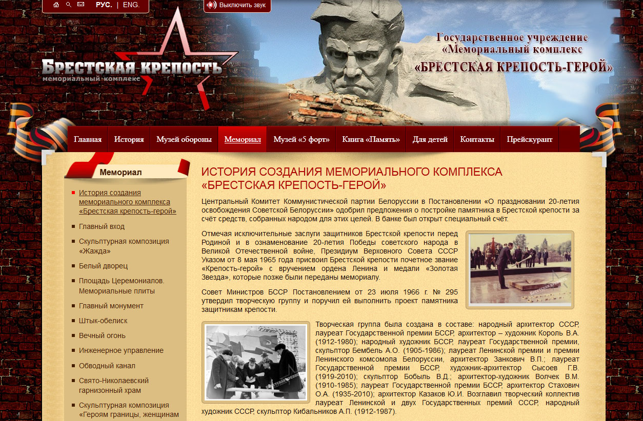 Сайт музея-мемориала «Брестская крепость». О музее, о защите и защитниках крепости, современной деятельности музея, хроника событий защиты и Книга памяти защитников Цитадели.