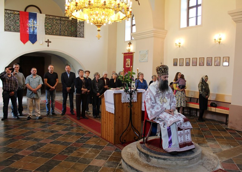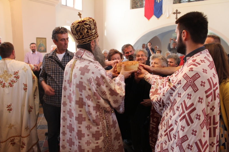 Након Литургије Митрополит Порфирије је предводио литијски опход око храма и благословио славски колач и кољиво након чега је архипастирски поучио вијерни народ из Грубишног поља и сусједних парохија који се, за овдашње прилике, окупио у не малом броју и који је дошао да са својим Архијерејем прослави празник Светог великомученика и побједоносца Георгија. Говорећи о данашњем празнику Митрополит је рекао да „ нам свети Георгије открива шта је то снага вере и да је овај свет и овај живот само један део онога због чега је саздан и створен човек. Садан је и позван да буде добар, саздан да буде савршен, саздан да воли, да се жртвује за ближњег и да у томе налази смисао и лепоту, али и да у томе задобија Царство Божје. Славећи Светог Георгија ми треба да се оснажимо у свом идентитету, у својој вери. Да знамо, као што је и он знао, да ништа није вредније од Христа и да можемо задобити сва блага и сву славу овога света, али је све узалуд и празно уколико је празно наше срце, уколико у срцу нашем не обитава Христос. Када је Христос међу нама онда ћемо моћи своје ближње да видимо као иконе Христове и да, без обзира на разлике, можемо бити једнодушни.“ У својој бесједи Митрополит је изразио велику радост због заједничког богослужења и сусрета са вијерницима ове парохије, тјешећи их ријечима љубави, разумијевања и подршке.