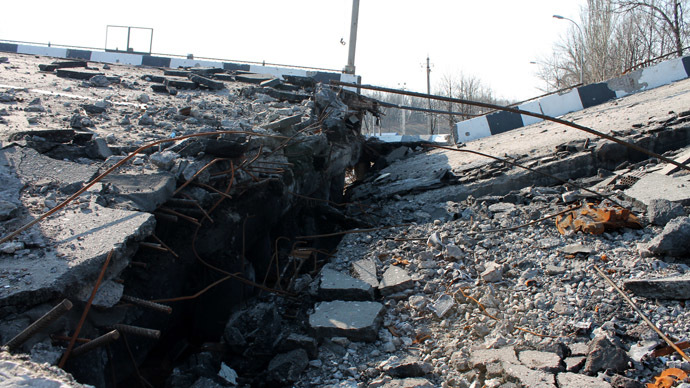 Putilovsky bridge destroyed in Donetsk. (RIA Novosti/Igor Maslov) Putilovsky bridge destroyed in Donetsk. (RIA Novosti/Igor Maslov)