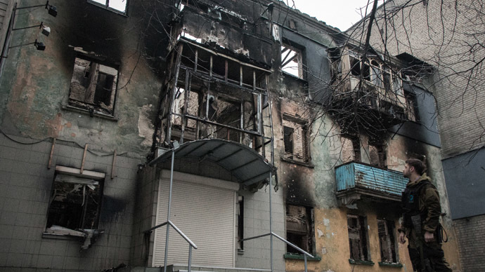 An apartment building in Debaltsevo destroyed by shelling. (RIA Novosti/John Trast) An apartment building in Debaltsevo destroyed by shelling. (RIA Novosti/John Trast)