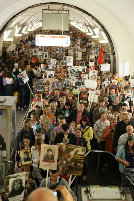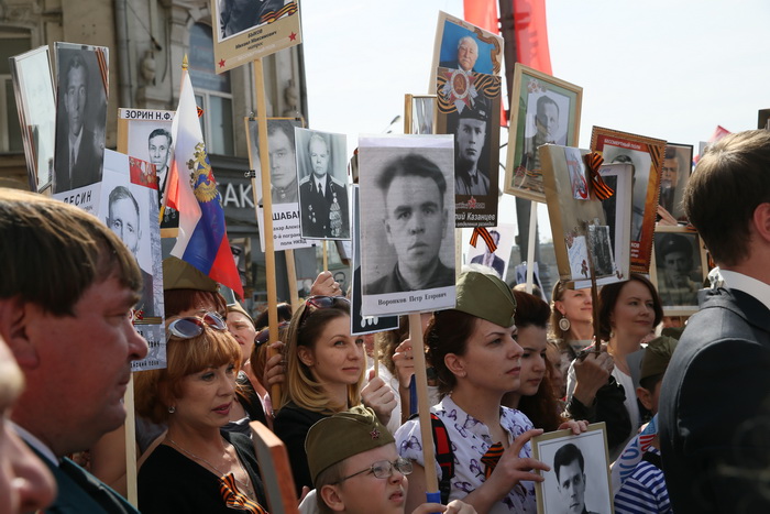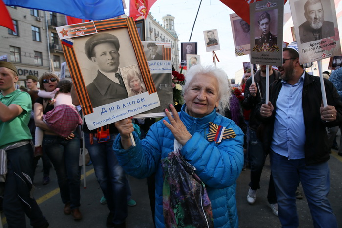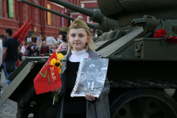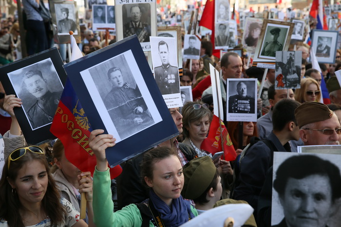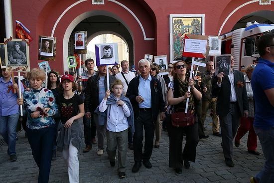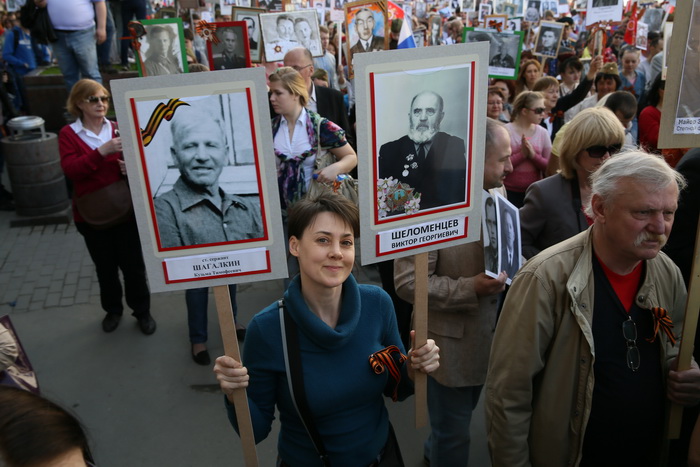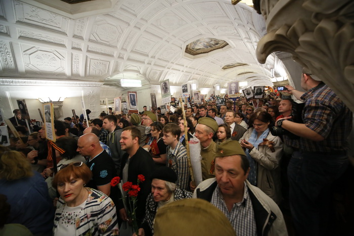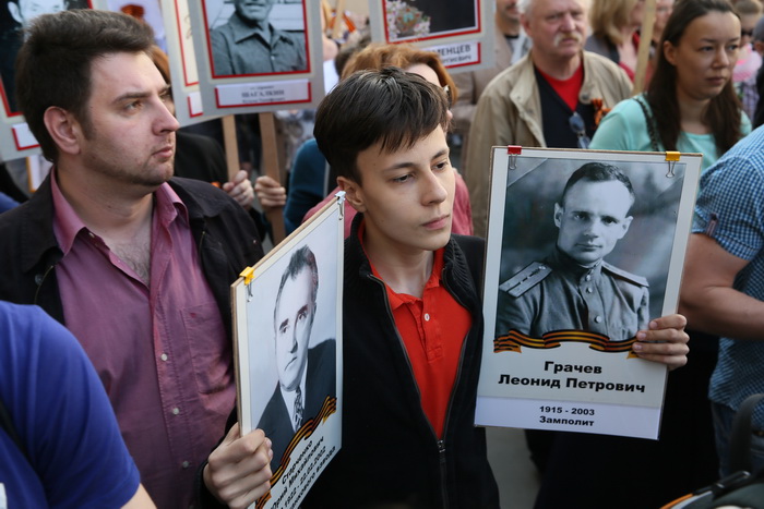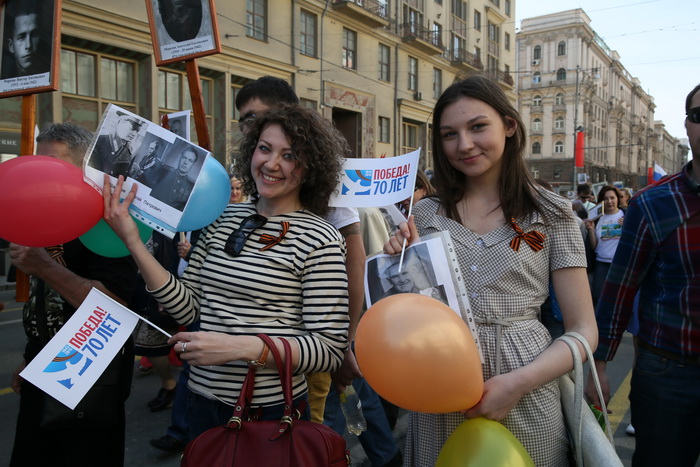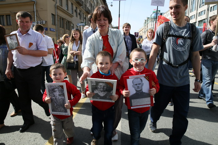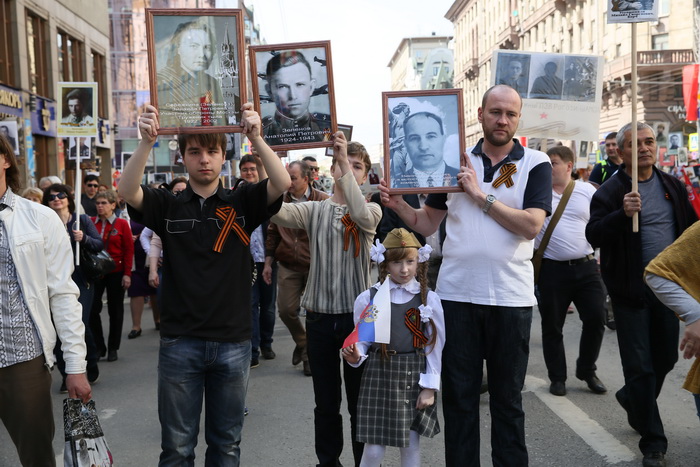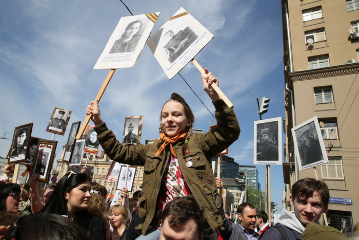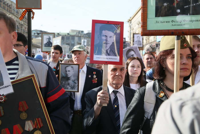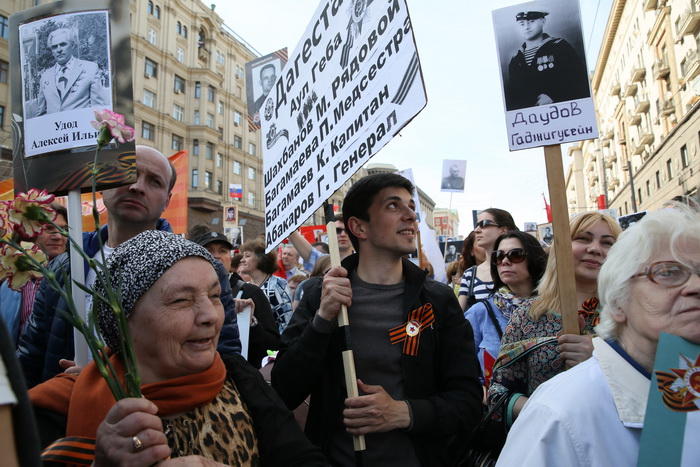 Не менее полумиллиона человек прошли в Москве с портретами своих родственников — участников Великой отечественной войны. Предлагаем фоторепортаж Владимира Ештокина.