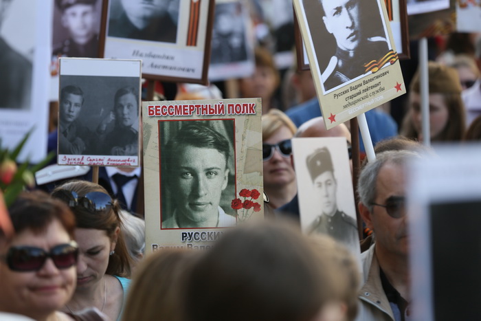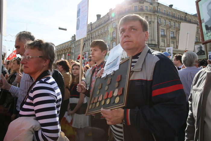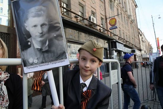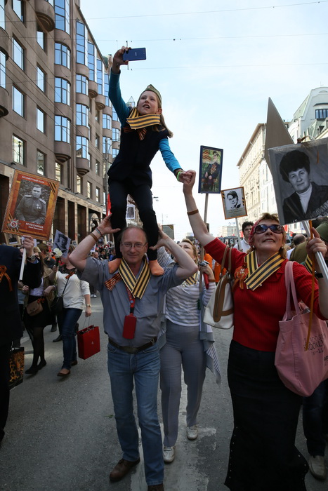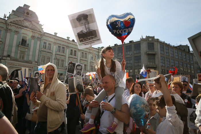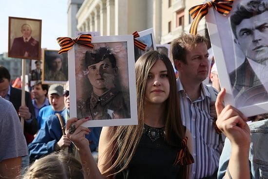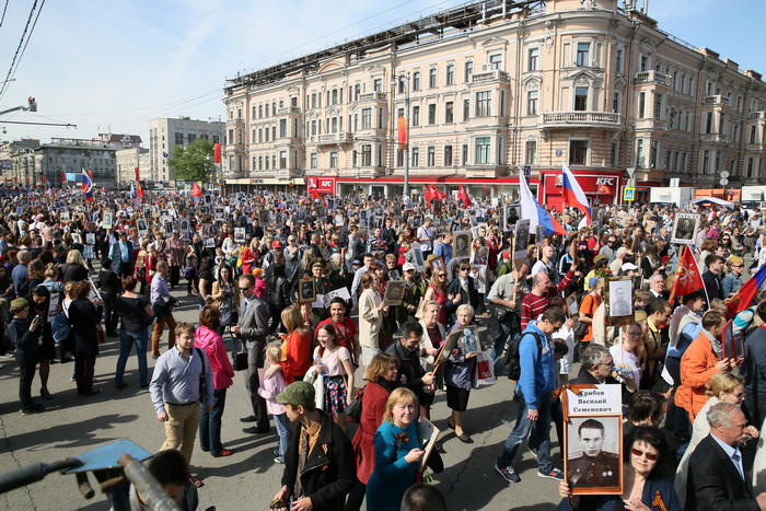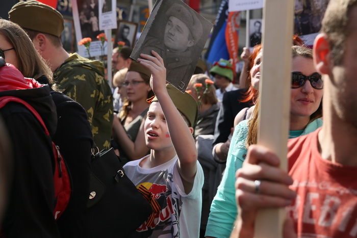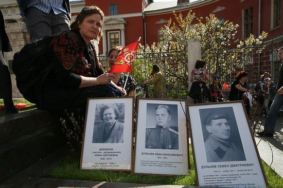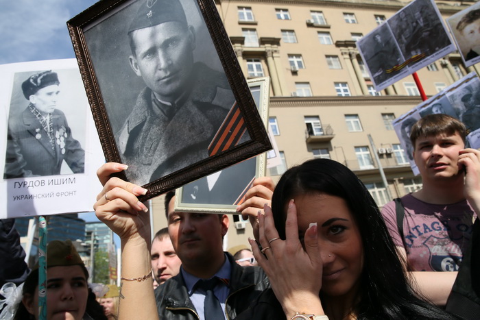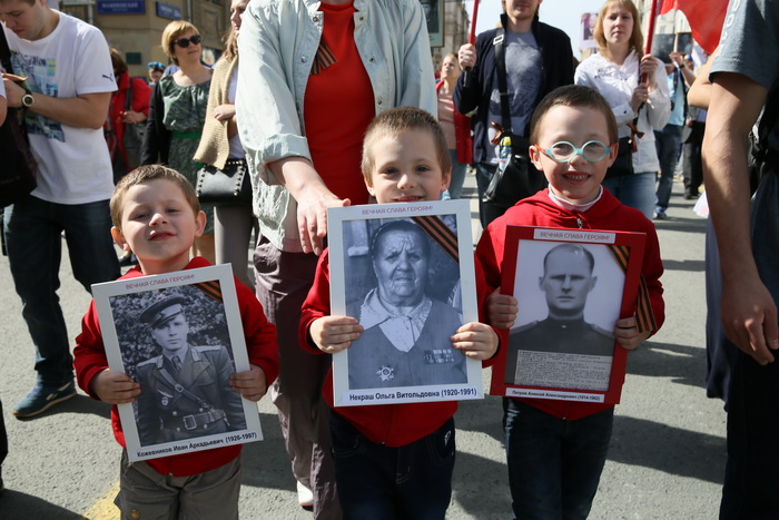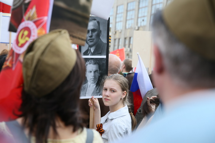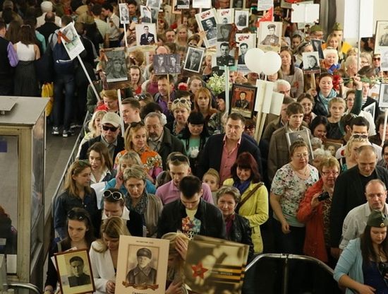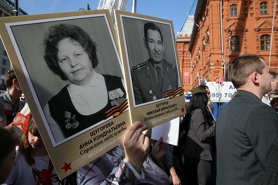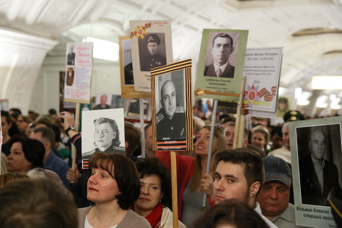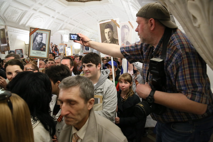 Не менее полумиллиона человек прошли в Москве с портретами своих родственников — участников Великой отечественной войны. Предлагаем фоторепортаж Владимира Ештокина.