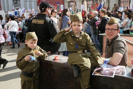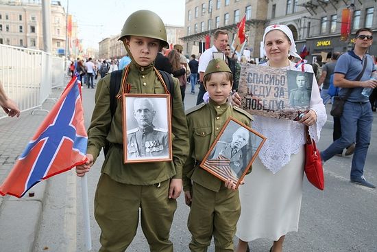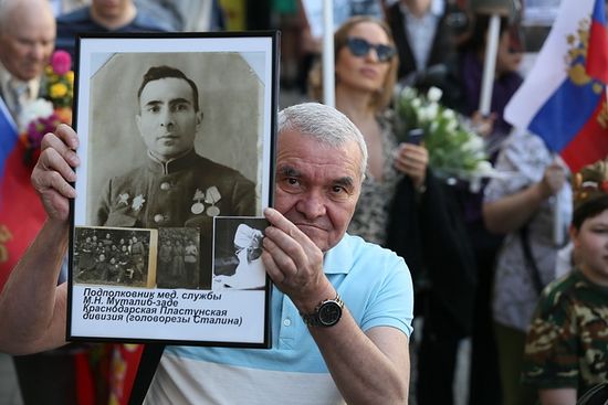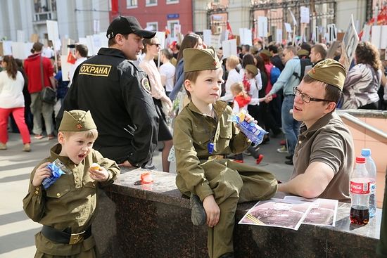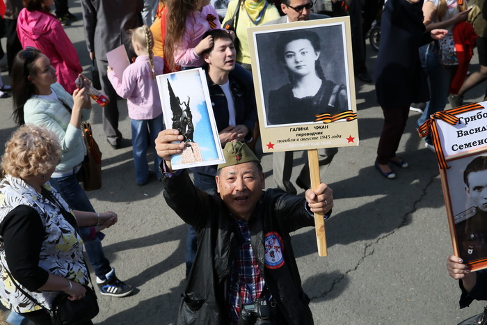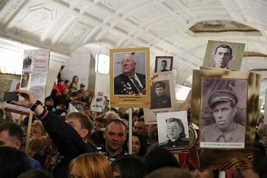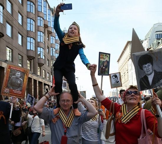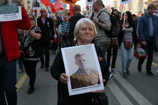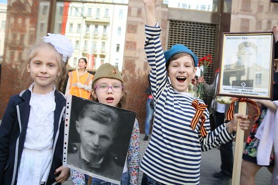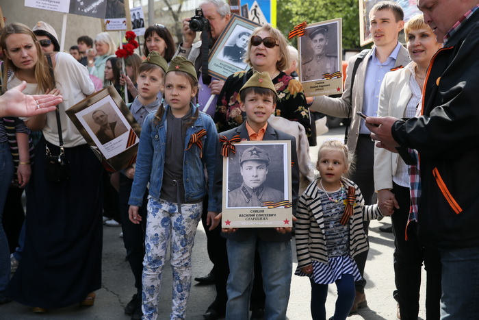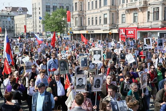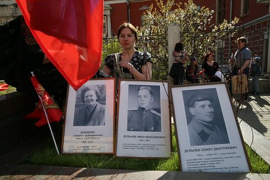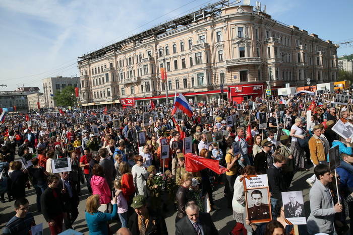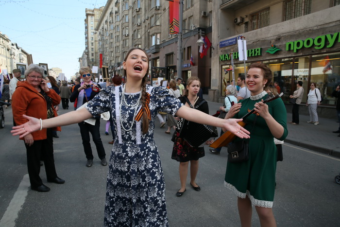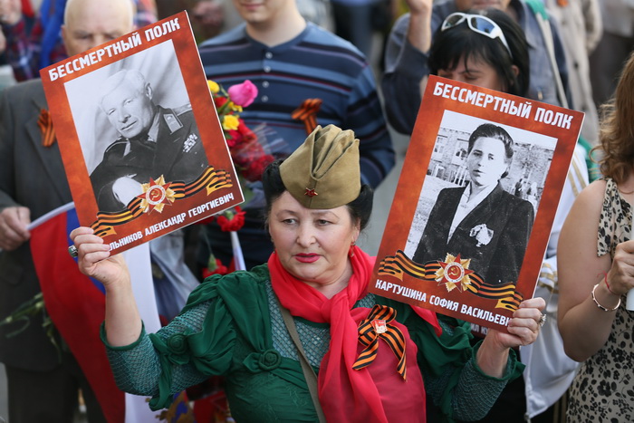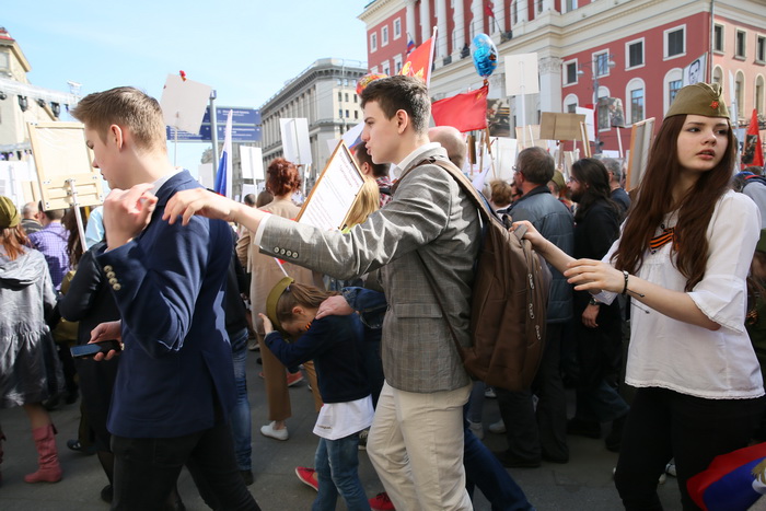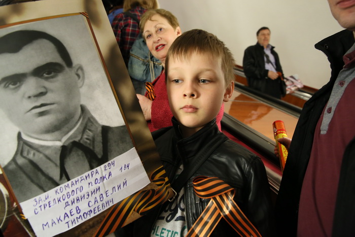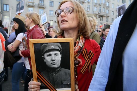 Не менее полумиллиона человек прошли в Москве с портретами своих родственников — участников Великой отечественной войны. Предлагаем фоторепортаж Владимира Ештокина.