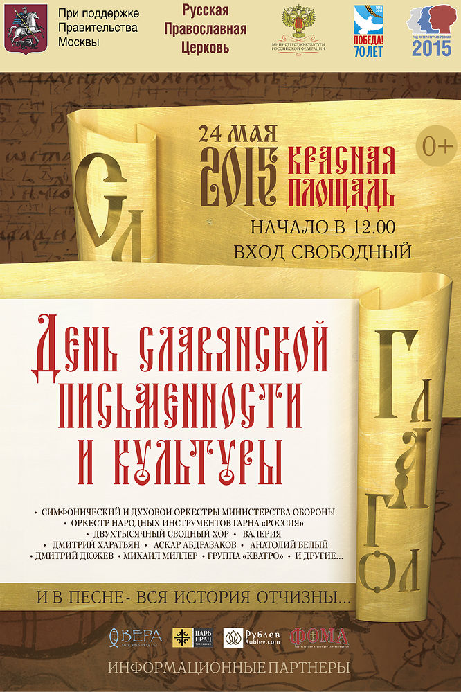 В России в этом году праздник приобретёт необычайный, поистине глобальный масштаб. Понимая, насколько велика значимость данного мероприятия, организаторы праздника (Русская Православная Церковь, Министерство культуры Российской Федерации и Правительство Москвы) планируют одновременное проведение торжественных концертов во многих городах нашей страны (с прямыми включениями в телевизионную трансляцию на Красную площадь в Москве). Все программы начнутся в 12:00 по московскому времени.