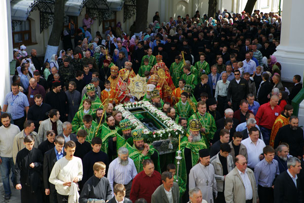 Вместе с тем, сегодня находятся наглецы, желающие оскорбить честь наших Святых Иова и Амфилохия, они хотят сделать Лавру музеем... Хотят прекращения молитв в обители, ибо свет преподобных не озаряет их грешные души, но обжигает. Те люди исповедуют не просто ересь, они живут во грехе и желают, чтобы все украинцы жили тем же образом! Всем нам необходимо всячески стоять на защите нашей Великой святыни от современных безумцев. Это новые украинские дети Хрущева, которые недостойны называться сынами Украинской земли, хотя и родились тут.
