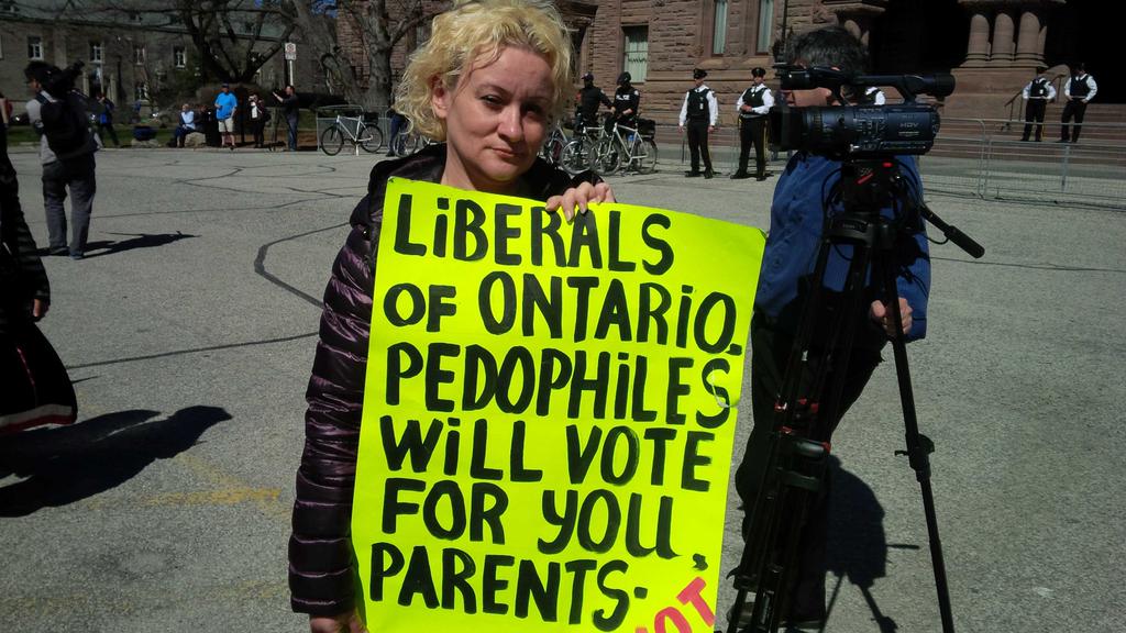Митинг је организован преко пута зграде скупштине провинције Онтарио, у којој заседа Кетлин Вин – премијер провинције, која не крије да је лезбејка и која намерава да програм који је ужаснуо родитеље у основне школе уведе од септембра.