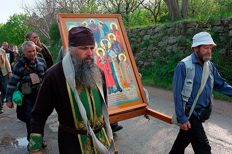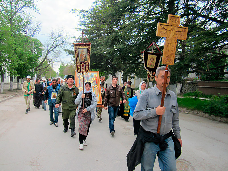 – Маршрут крестного хода протяженностью 2,5 тысячи километров по благословению митрополита Симферопольского и Крымского Лазаря и митрополита Феодосийского и Керченского Платона проходит через Севастополь, Симферополь, Феодосию и Керчь. Завершится он 8 августа в Смоленске, в канун праздника Смоленской иконы Божией Матери («Одигитрия»), который отмечается 10 августа. Крестный ход идет с иконой «Покров над Россией». Не все найдут силы, чтобы преодолеть весь путь. Но желающих участвовать в этой соборной молитве достаточно. Каждый пройдет тот отрезок пути, который ему доступен.