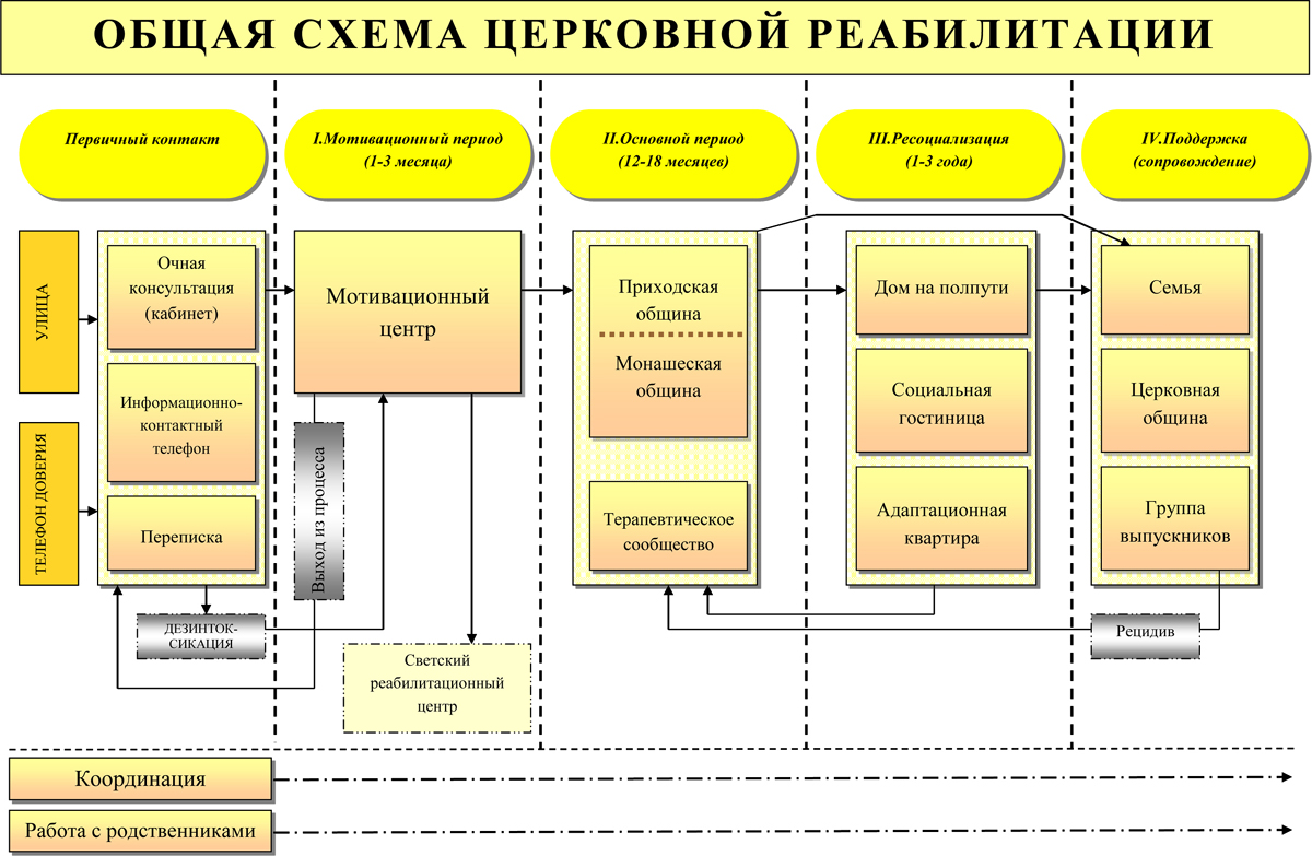 Родственники и сами наркозависимые могут обращаться за помощью по общероссийскому телефону церковной помощи наркозависимым: +7 (495) 912-15-10 (с 9 до 17 по будням), а также по электронному адресу Координационного центра по противодействию наркомании Синодального отдела по благотворительности: ccfoda@mail.ru Сотрудники Координационного центра после мотивационной беседы определяют наркозависимого в конкретный реабилитационный центр.