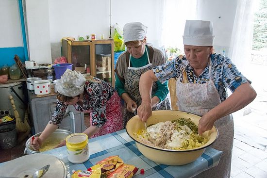 Волонтери такође помажу родитељима који имају више деце и самохраним мајкама, као и пензионерима који су остали без пензије и средстава за живот. При храму свакодневно храну добија 20 људи. Храну за потребите – предјело, главно јело и прилог – у трпезарији храма спрема група кувара-волонтера.