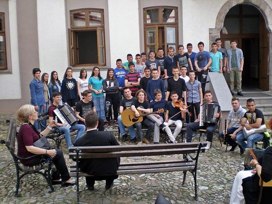 Професор Богословије Светих Кирила у Методија у Призрену г. Дејан Ристић најлепше је дочарао посету крушевљана Царском граду Призрену речима: ''Божури Царева града цветају и миришу у Царском Призрену''. Наиме, с благословом Његовог Преосвештенства Епископа крушевачког г. Давида, 16. маја 2015. годинe ансамбл ''Божури Царева града'' посетио је Призрен, Богословију, Саборни храм Светог Ђорђа, Богородицу Љевишку, Свете Архангеле...