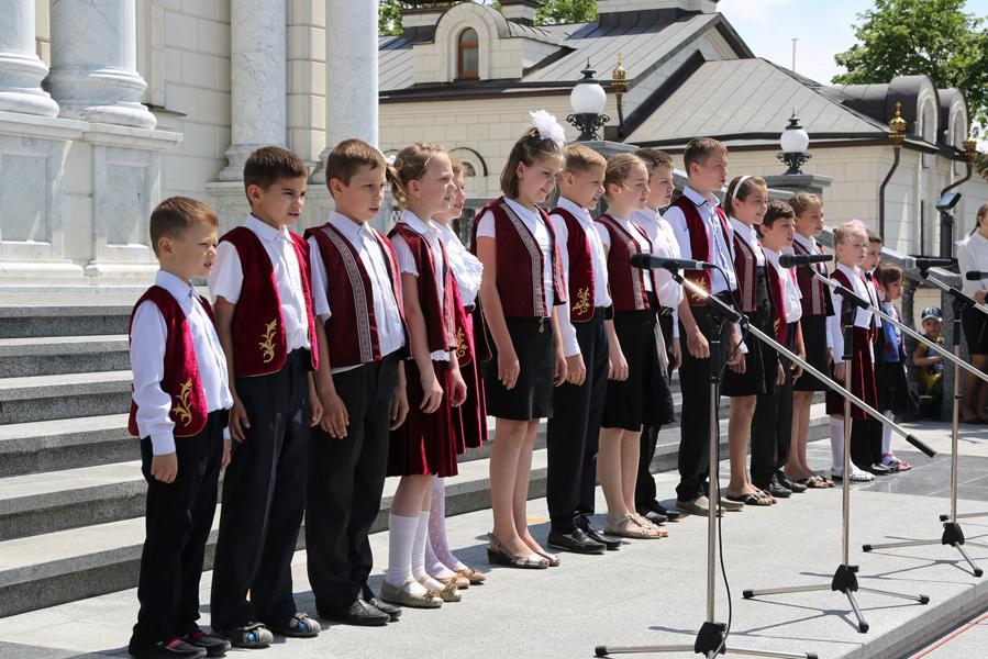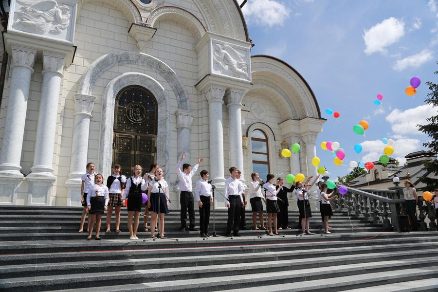 В последний день весны и учебного года, в канун дня детства, совпавший в этом году с Днём Святой Троицы, на Соборной площади в Горловке прошёл праздник последнего звонка для воспитанников воскресных школ города и праздник детства.
