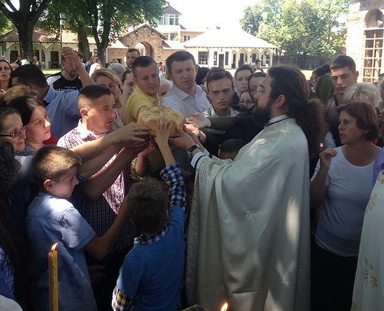 По повратку у манастирску порту обављено је Мало освећење воде, благосиљање славског жита и резање колача.