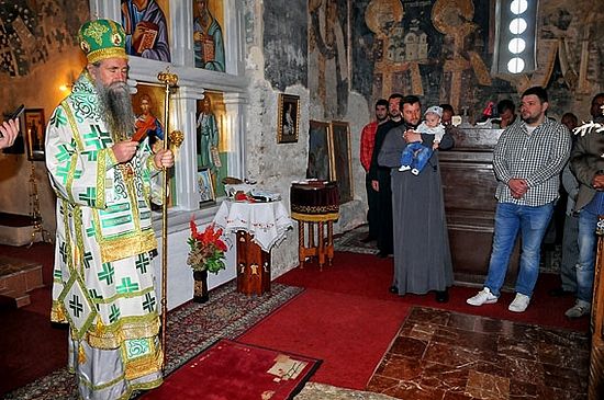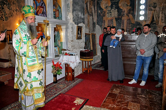 Свето богослужење увеличао је радостан чин крштења малог Ђорђа Видаковића, сина свештеника Драгана Видаковића. Свету Тајну миропомазања новокрштеног Ђорђа извршио је Његово Преосвештенство владика Јоаникије, који је архипастирском бесједом поучио сабрани вјерни народ: