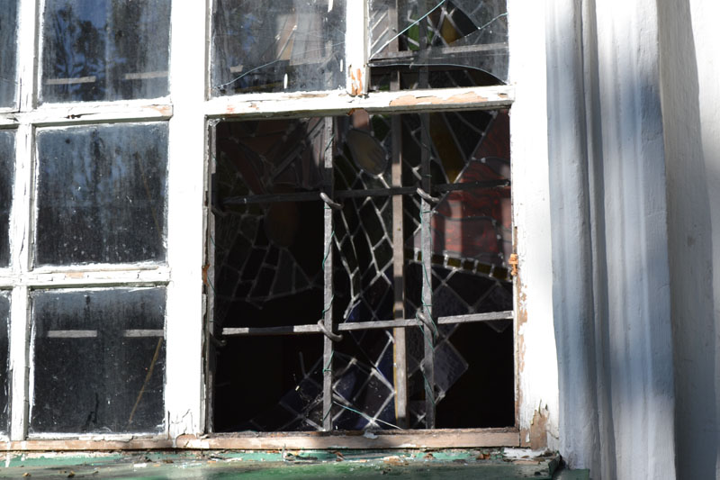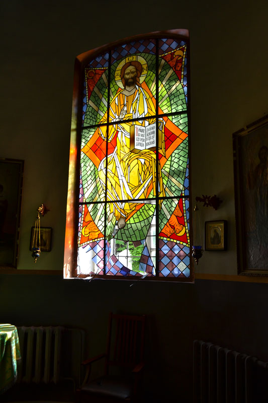 Злоумышленники пытались взломать дверь в храм святителя Николая и разбили окна в его алтарной части. В храме в честь преподобных Антония и Феодосия Печерских тоже в алтарной части разбили окна и значительно повредили витраж с изображением Спасителя.