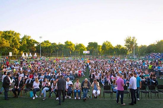 Пред само емитовање филма подетиоца је било преко 3.000 тако да су била попуњена сва места на трибинама као и партер, те су остали поседали по преосталом делу фудбалског терена ишћекујући почетак програма.