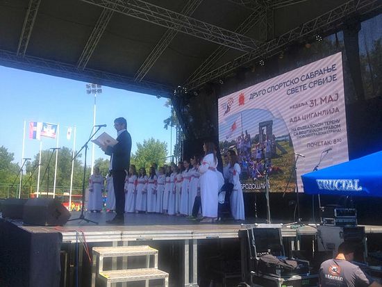 Након завршетка Свете Литургије, у 11 часова, извођењем химне ”Боже правде” коју је уз музичку пратњу војног оркестра ”Станислав Бинички” отпевала малена Анђела Тасић, и пуштањем 100 белих голубова са бине, отпочео је богати културно-спортски програм