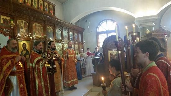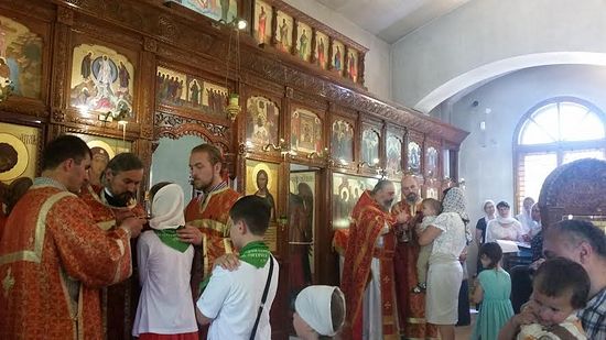 Светом Литургијом је началствовао отац Андреј Алексејев са протојерејем Виталијем Тарасјевим, старешином храма Свете Тројице и домаћином данашњег сабрања. Апостол је данас читао Мирослав Јелић, који је заједно са Бојаном Грујичићем у пратњи групе руских поклоника; наши су млади људи дипломирани теолози Московске духовне академије.