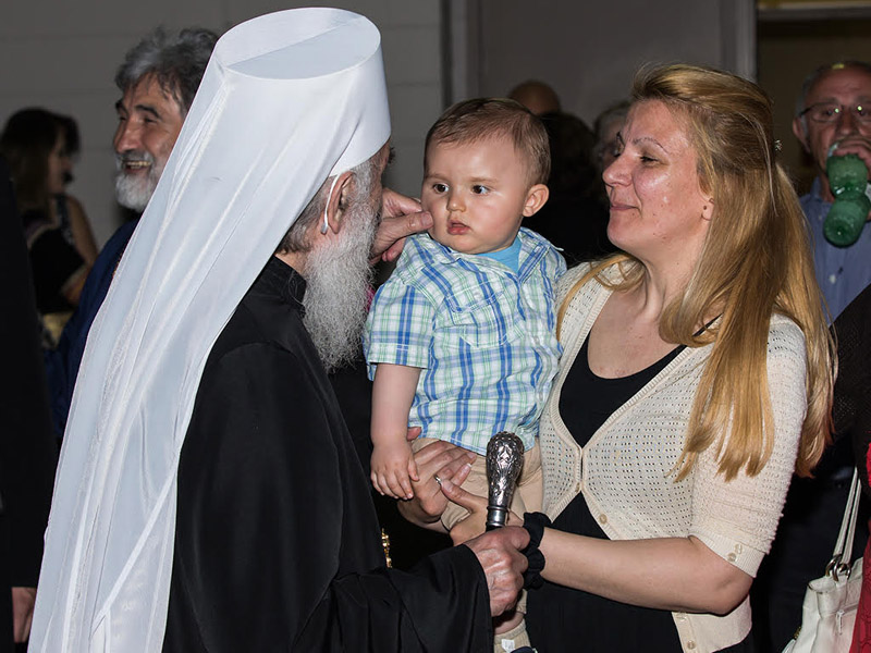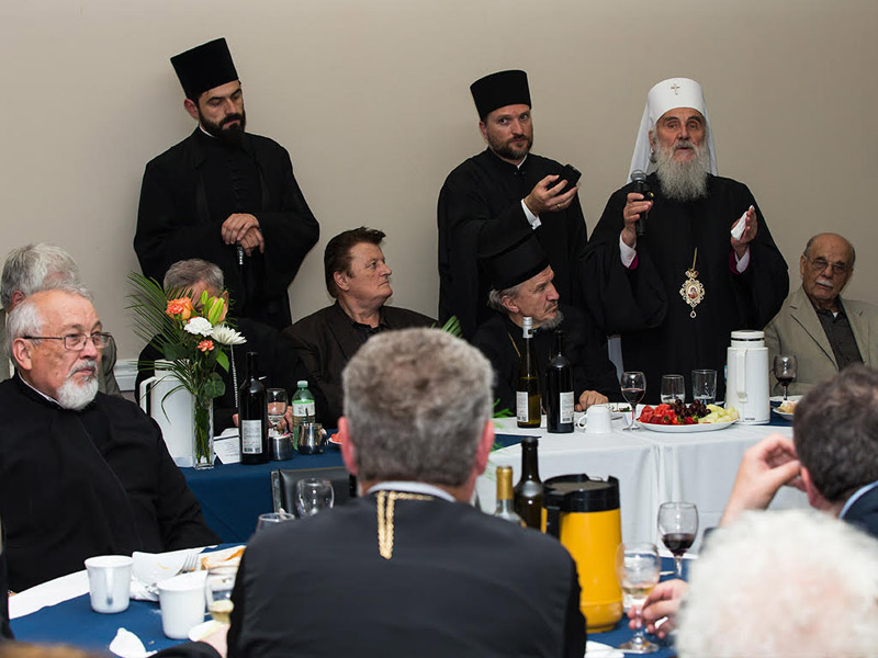 У име Парохије Светог великомученика Георгија, у име ове Црквено Школске Општине и свих пододборних организација и у моје лично име поздрављам Вас, просећи благослов Ваше Светости.