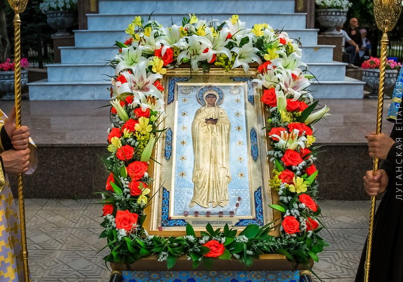 14 июня в Луганске состоялся Крестный ход. Митрополит Луганский и Алчевский Митрофан, епископ Ровеньковский и Свердловский Пантелеимон, духовенство двух епархий и верующий народ, прошли главными улицами города с местночтимой иконой Божией Матери «Луганской».