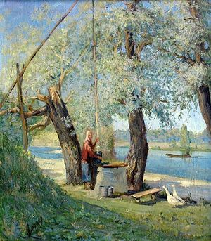 Однажды, когда дед умывался у колодца, хозяйка поднесла ему полотенце и начала ласковые речи