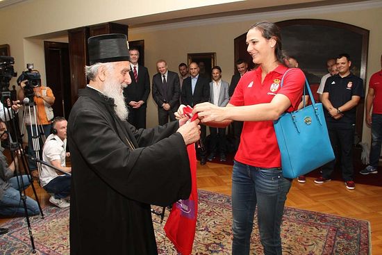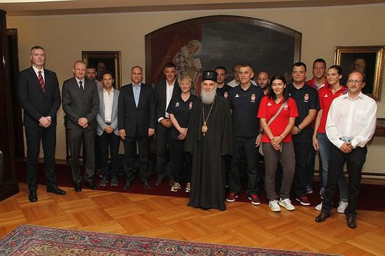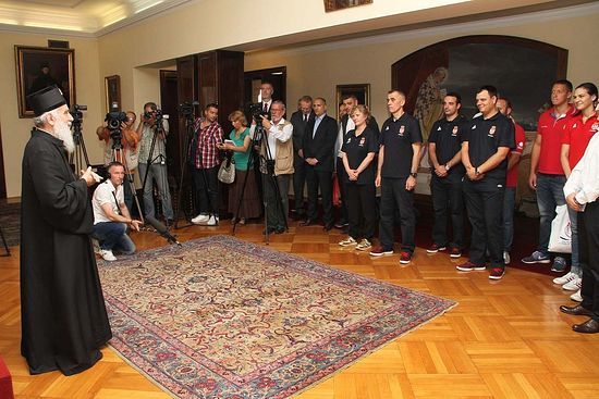 Његова Светост Патријарх српски Г. Иринеј примио је данас, 2. јула 2015, у Патријаршији српској играче и представнике Кошаркашког, Ватерполо и Фудбалског савеза Србије, који су са светских и европских такмичења понели златне медаље.