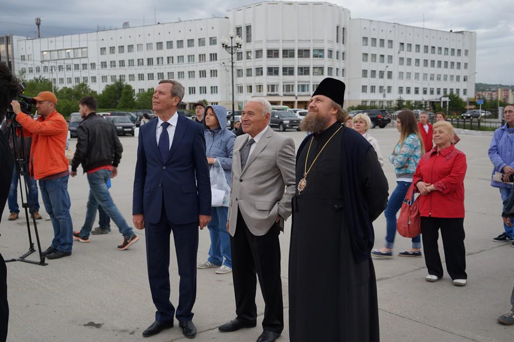При установке памятника присутствовали епископ Магаданский и Синегорский Иоанн, губернатор Магаданской области Владимир Печеный, мэр Магадана Сергей Абрамов, жители Колымской столицы.
