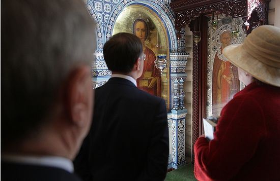 Гости прошлись по всей территории монастыря, посетили храм во имя святых Царственных страстотерпцев, храм Державной иконы Божией Матери и храм святителя Николая Мирликийского чудотворца.