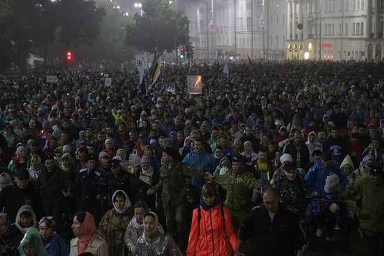 В два часа ночи после Божественной Литургии верующие начали молитвенное шествие по маршруту, которым в 1918 году провезли убиенных членов императорской семьи: через центр города, ВИЗ, Таганский ряд, Сортировку, поселок Шувакиш, сообщает сайт Екатеринбургско епархии.