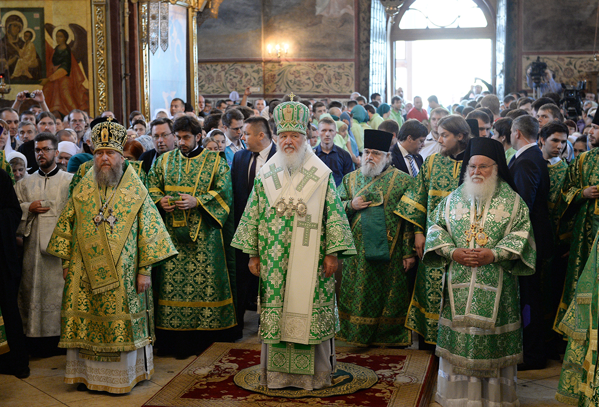 После сугубой ектении Предстоятель Русской Православной Церкви вознес молитву о мире на Украине.
