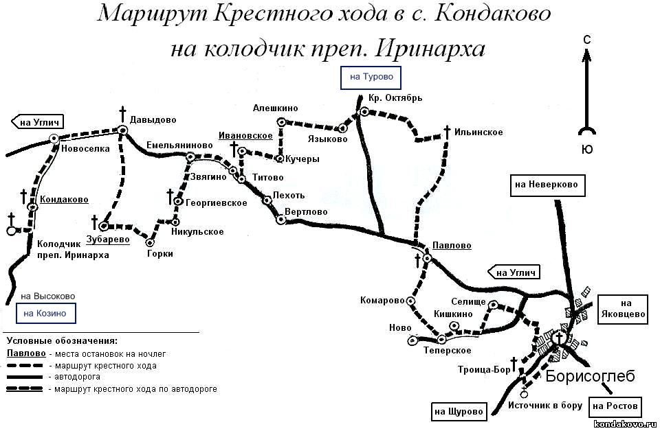В 2015 г. традиционный Иринарховский крестный ход из Борисо-Глебского, что на Устье, монастыря в село Кондаково начнётся в среду 22 июля и продлится 5 дней.