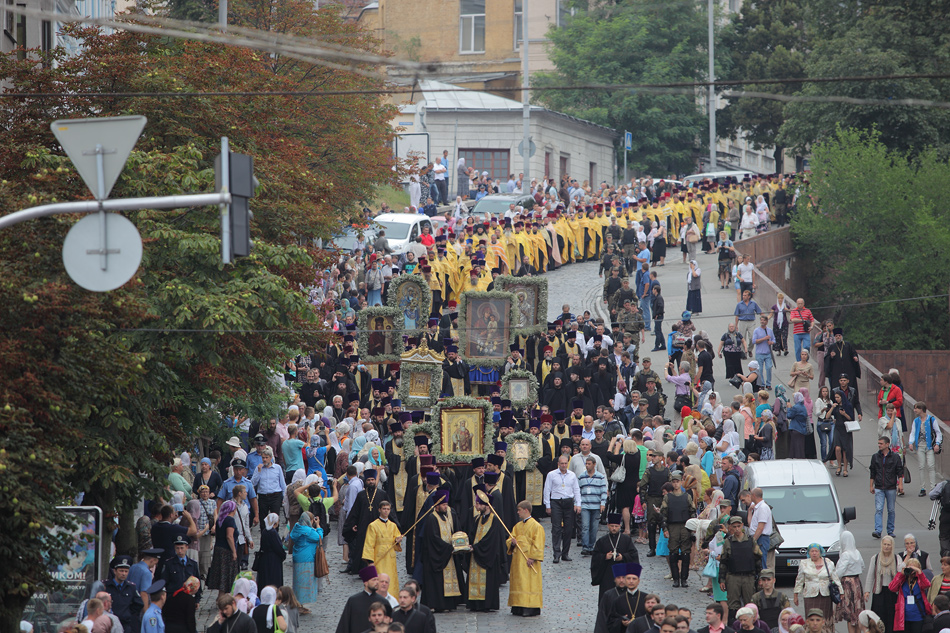 Вместе с Его Блаженством в шествии приняли участие епископат и духовенство всех епархий УПЦ, а также более 20 000 православных верующих со всей Украины.