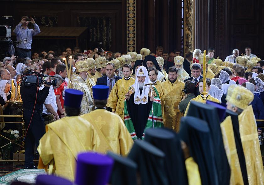 От лица Священного Синода Русской Православной Церкви к Святейшему Патриарху Московскому и всея Руси Кириллу обратился митрополит Крутицкий и Коломенский Ювеналий: «Ваше Святейшество, от купели Вашего крещения Вы духовно связаны со святым равноапостольным великим князем Владимиром, и, став Первосвятителем земли нашей, Вы продолжаете его подвиг. Пусть Господь Вашими трудами и Первосвятительскими молитвами даст мир земле нашей и благоденствие народу нашему, а Вас да сохранит в мире и благоденствии на многая и благая лета!»