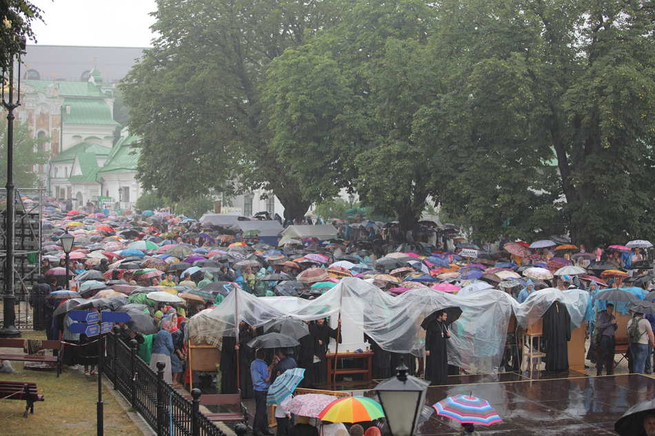 Бесконечным потоком второй день подряд идут православные к главной святыне Украины - Киево-Печерской Лавре, чтобы помолиться перед чудотворными образами Пресвятой Богородицы, которые привезли в Киев на празднование Дня Крещения Руси и день памяти равноапостольного князя Владимира.