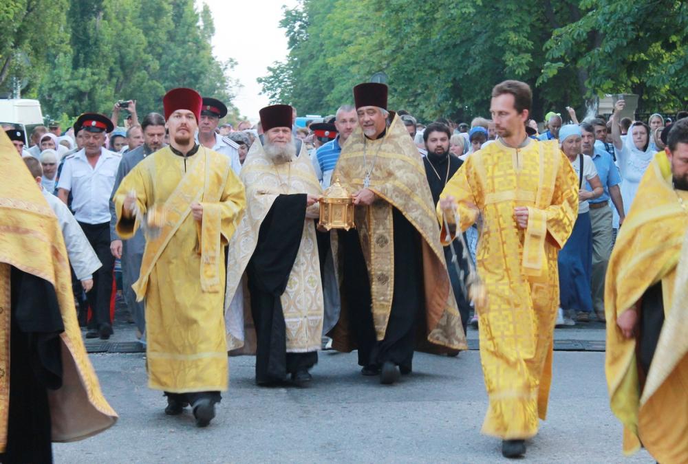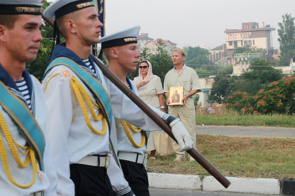Молитвенное шествие началось от Владимирского собора-усыпальницы адмиралов. Его участниками стали духовенство Севастопольского округа и священнослужители, прибывшие на юбилейные торжества, моряки-черноморцы, многочисленные миряне. Согласно установленному еще в 1866 году порядку крестный ход проходит под Андреевским флагом. Завершился маршрут у Свято-Владимирского собора в Херсонесе. Ковчег с частицей мощей равноапостольного князя Владимира был доставлен в верхний храм собора для молитвенного поклонения верующим в ходе праздничной Божественной литургии.
