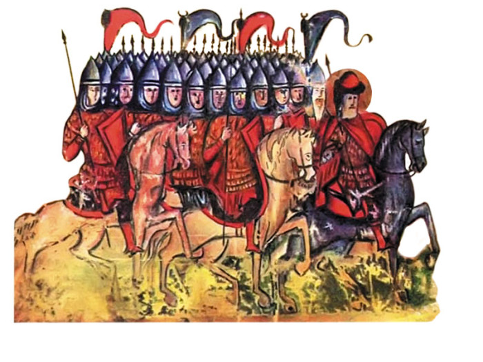 Князь с дружиной. Миниатюра из «Сказания о Борисе и Глебе». XIV в. Князь с дружиной. Миниатюра из «Сказания о Борисе и Глебе». XIV в.