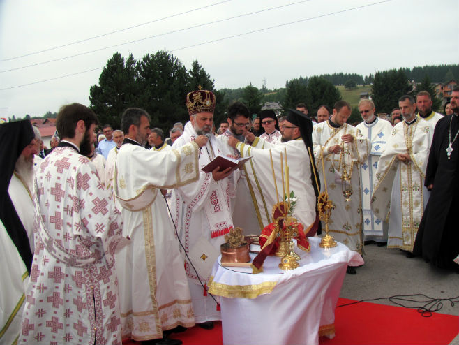 Храм су освештали епископи захумско-херцеговачки Григорије, зворничко-тузлански Хризостом и бихаћко- петровачки Атанасије. У храму је служена света литургија, а код спомен крста помен за 958 погинулих бораца, сахрањених у том гробљу.
