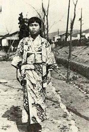 «Три цвета характеризуют для меня день, когда атомная бомба была сброшена на Хиросиму: чёрный, красный и коричневый. Чёрный — потому что взрыв отрезал солнечный свет и погрузил мир в темноту. Красный был цветом крови, текущей из израненных и переломанных людей. Он также был цветом пожаров, сжёгших всё в городе. Коричневый был цветом сожжённой, отваливающейся от тела кожи, подвергшейся действию светового излучения от взрыва».
