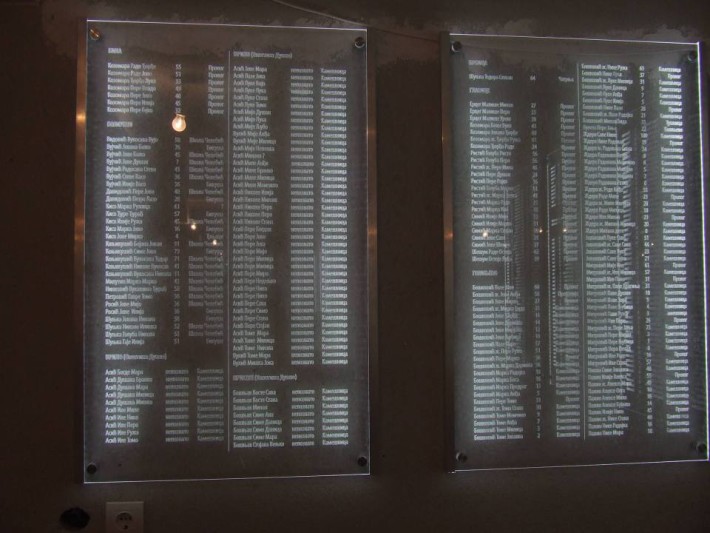 Компанија Принт Ин из Батајнице, израдила је табле са списковима страдалих чија имена су до сада са сигурнишћу утврђена. Табле са диодама које осветљавају имена страдалника, постављене су у крипти, поред саме гробнице где почивају мошти страдалника.