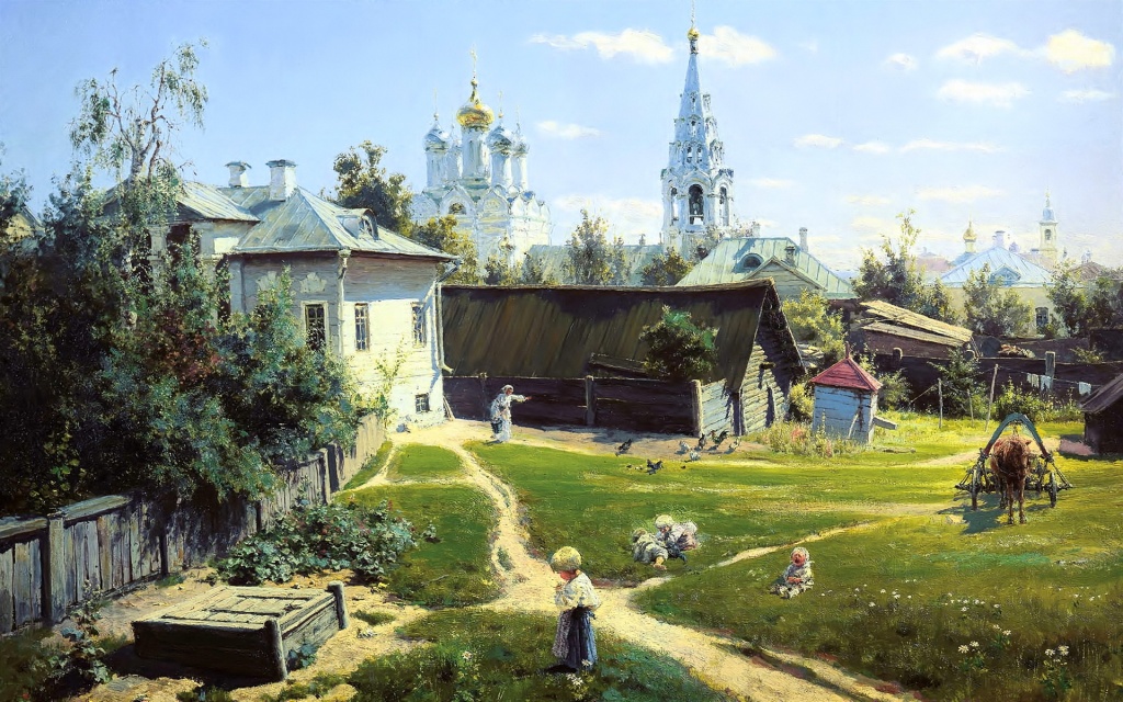 В 1877 году изображение храма вошло в историю русской живописи – его запечатлел Василиий Дмитриевич Поленов. Сохранившая ушедший облик города картина «Московский дворик» принесла славу художнику, сумевшему вложить в нее столько любви к жизни, наполнить радостью и светом. В тот год В.Д. Поленов переехал из Санкт-Петербурга в Москву и во время поиска квартиры зашел в дом, из окна которого ему и представился вид, изображенный на картине. Там же художник написал с натуры первоначальный вариант своего полотна: храм на нем более отдален от зрителя, ныне несохранившийся дом с колоннами (также известный по картине «Бабушкин сад») сильнее затенен деревьями, нет людей. Доработанное художником произведение – своеобразный символ простоты и благочестия московской жизни того времени, как известно, и приобрел для своей коллекции П.М. Третьяков.