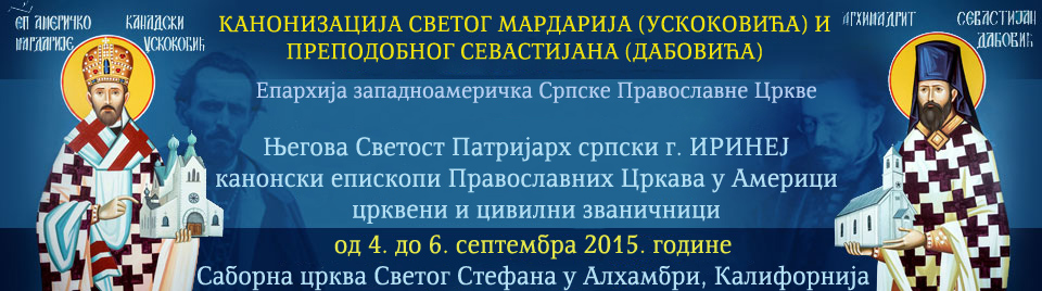 Западноамеричка епархија Српске Православне Цркве с Преосвећеним Епископом др Максимом на челу најављује евхаристијска сабрања од 4. до 6. септембра 2015. године, када ће се обавити и званични чин причислења Сабору Светих Срба Епископа Мардарија (Ускоковића) и архимандрита Севастијана (Дабовића), новопросијавших апостола и просветитеља.