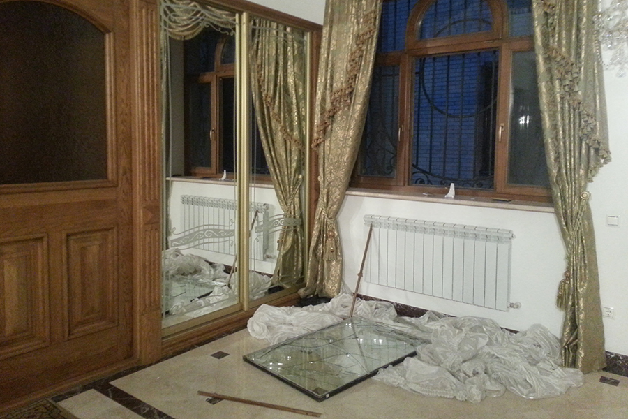 Од таласа експлозије и крхотина пројектила који је експлодирао непосредно уз ограду настрадала је зграда Горловске епархијске управе: оштећени су сама ограда као и стакла, улазна врата и фасада зграде.