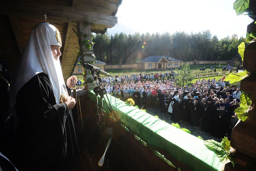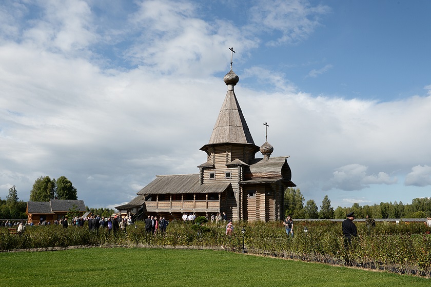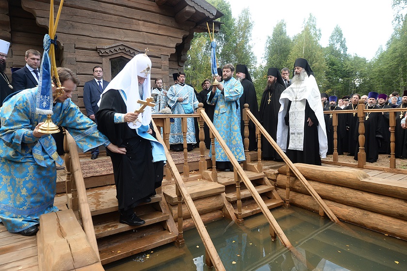 Святейший Патриарх Кирилл совершил чин малого освящения деревянного храма в честь святого равноапостольного великого князя Владимира.