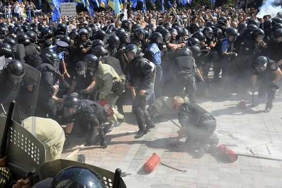 После этого у здания парламента начались столкновения митингующих, которые выступали против голосования за данный законопроект, с правоохранителями. В результате столкновений и брошенной в полицейских гранаты погиб один солдат срочной службы нацгвардии. Пострадали более 120 правоохранителей и гражданских, в том числе представители СМИ.
