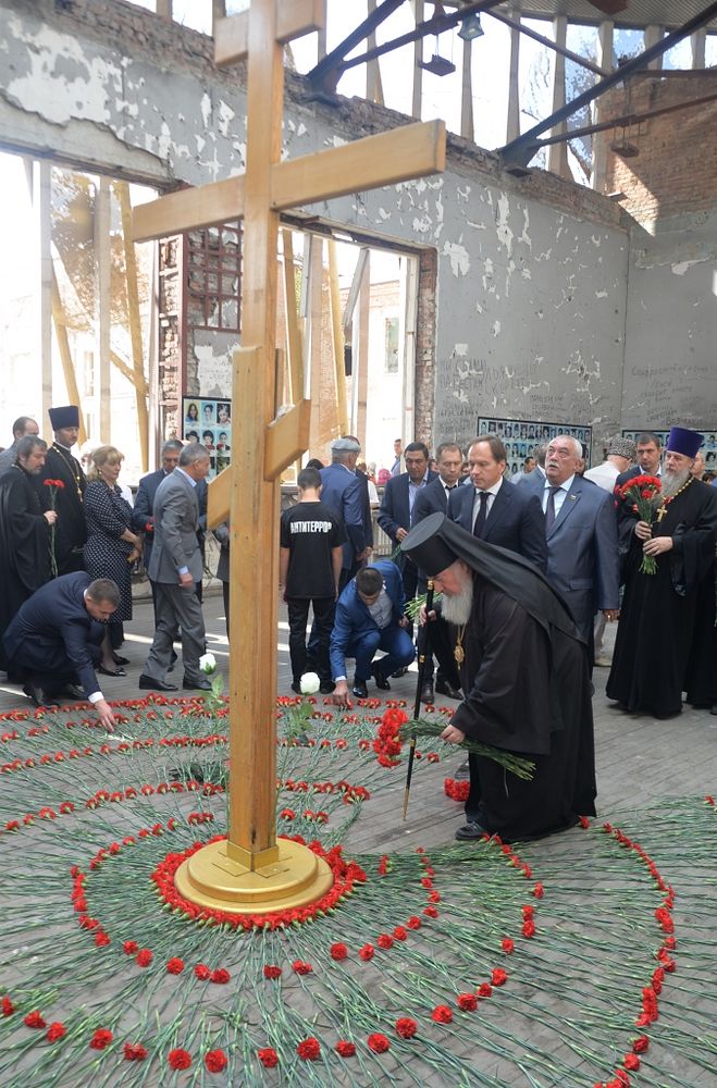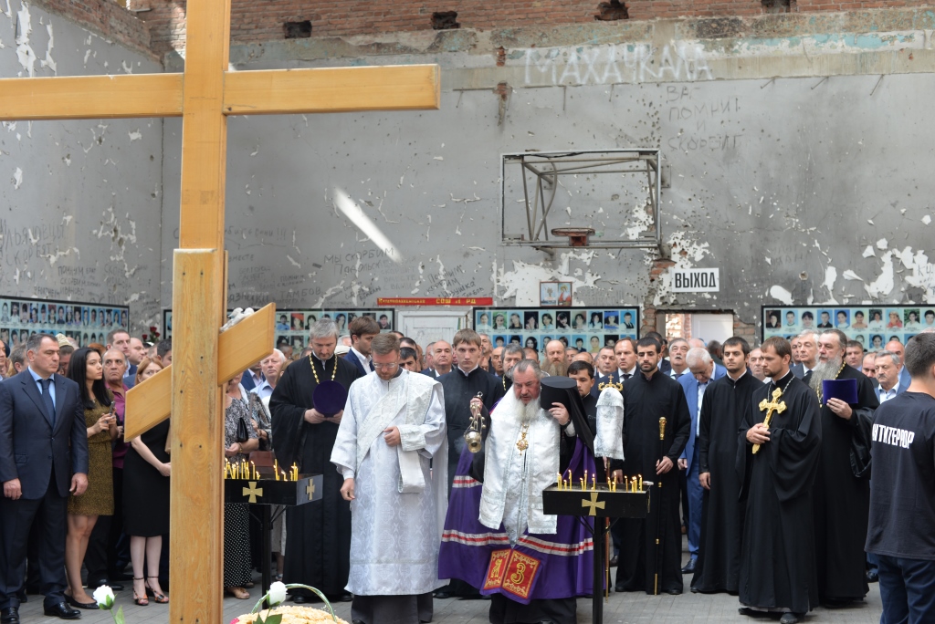 Почтить память погибших к стенам школы, где в течение 52 часов террористы удерживали в заложниках более тысячи детей и взрослых, пришли тысячи людей. Траурная церемония, по традиции, началась со школьного звонка и последующего удара колокола. Затем правящий архиерей в сослужении духовенства совершил заупокойную литию в память о погибших.