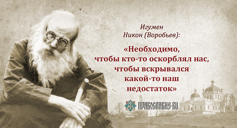 «Если же человек будет роптать на скорби и болезни, будет искать виновника этим скорбям среди людей, бесов, обстоятельств, станет всеми средствами пытаться избежать их, то враг поможет ему в этом, покажет ему мнимых виновников (начальство, порядки, соседи и прочее, и прочее), возбудит в нем вражду и ненависть к ним, желание мстить, оскорблять и прочее, и прочее».